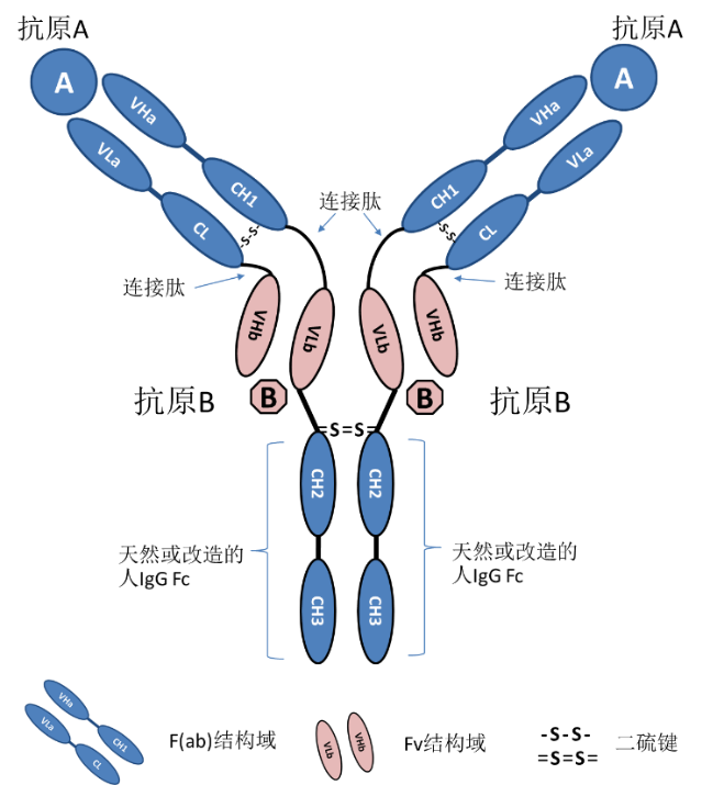图2 澳门博彩生物的四价对称双特异性抗体结构示意图